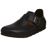 The London shoe from Birkenstock is so comfortable you won't want to take it off. The style is enhanced by a matte leather upper, an adjustable buckle, cutouts at the vamp, a suede-lined footbed, an absorbent cork midsole, and a textured rubber outsole for sure footing.